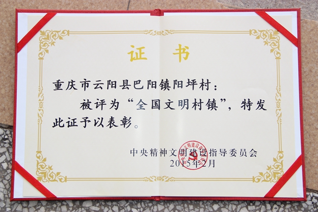 2015年2月,巴陽鎮(zhèn)陽坪村榮獲全國文明村稱號