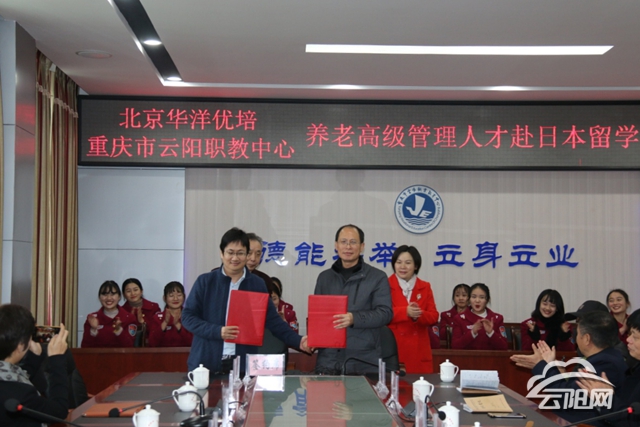云陽網(wǎng)訊(記者 楊梅娜 通訊員 張小林)12月24日,云陽職教中心與北京華洋優(yōu)培教育科技有限公司養(yǎng)老高級管理人才赴日本留學(xué)戰(zhàn)略合作簽約儀式在該校舉行。華洋優(yōu)培授予云陽職教中心為“國際養(yǎng)老人才培訓(xùn)基地”,標(biāo)志著養(yǎng)老服務(wù)專業(yè)已落地云陽職教中心,填補了云陽康養(yǎng)行業(yè)人才培養(yǎng)的空白。