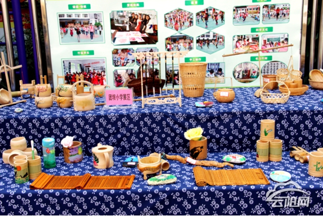 走進(jìn)學(xué)校的竹編陳列室,制作精美的竹編文字,竹編書(shū)畫(huà),還有編織精巧的花籃、筆筒……令人目不暇接。為了更好的傳承竹編技藝,切實(shí)開(kāi)展特色學(xué)校創(chuàng)建,全體教職工上下一心,分工協(xié)作。學(xué)校每年投入資金近1萬(wàn)余元,堅(jiān)持“兩教一學(xué)”,即先聘用竹編藝人教老師,然后由老師教學(xué)生,大家共同學(xué)習(xí)?!拔覀儗⑹止ぞ幙椚谌氲秸n程輔助活動(dòng)和社會(huì)實(shí)踐,并將手工編織排上課表,納入教學(xué)月考核?!毙iL(zhǎng)鄧技權(quán)介紹,竹韻文化不僅要外塑于形,還要內(nèi)化于心,經(jīng)過(guò)一番探索,學(xué)校還開(kāi)發(fā)了校本教材《竹韻文化》,將竹文化與工藝制作緊密結(jié)合起來(lái),培養(yǎng)孩子的建構(gòu)意識(shí)和實(shí)踐能力,從而促進(jìn)孩子的身心和諧發(fā)展。