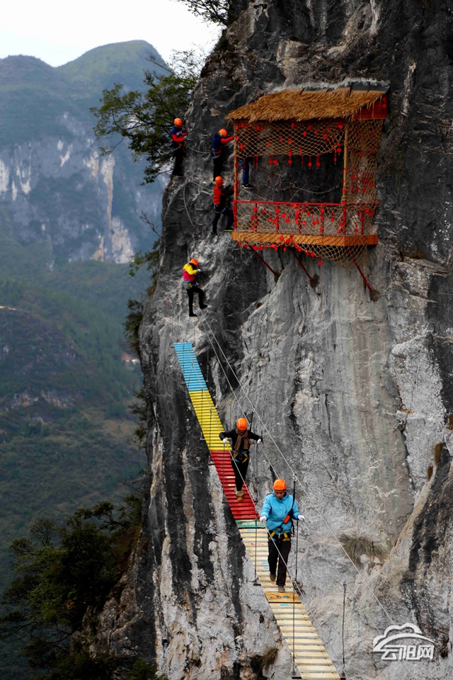 據(jù)項(xiàng)目負(fù)責(zé)人介紹,游客想體驗(yàn)飛拉達(dá)項(xiàng)目,首先穿好安全設(shè)備、在工作人員的指引下進(jìn)行一段距離的懸崖攀爬,然后到達(dá)云端彩橋,走完云端彩橋再攀爬一段峭壁,就可以進(jìn)入緬甸橋,抵達(dá)終點(diǎn)寄情壁,目前,云端彩橋在試運(yùn)營期間,體驗(yàn)價(jià)100元/人。除云端彩橋外,龍缸景區(qū)還將在龍缸上空建設(shè)國內(nèi)首條天坑飛拉達(dá),和云端彩橋交相呼應(yīng),吸引更多游客前來體驗(yàn)。