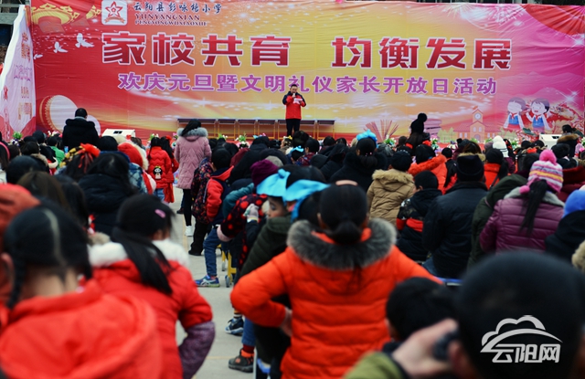 云陽網(wǎng)訊(通訊員 杜春樺)12月29日,云陽縣彭詠梧小學舉辦2018年“家校共育、均衡發(fā)展,歡慶元旦暨文明禮貌家長開放日活動”,上千名師生與前來參加活動的家長們匯聚在操場繪成辭舊迎新“同心圓”,載歌載舞喜迎教育的春天、生態(tài)的明天,展望“鄉(xiāng)村振興在路上”的美好前景。