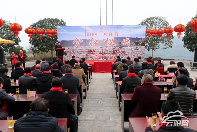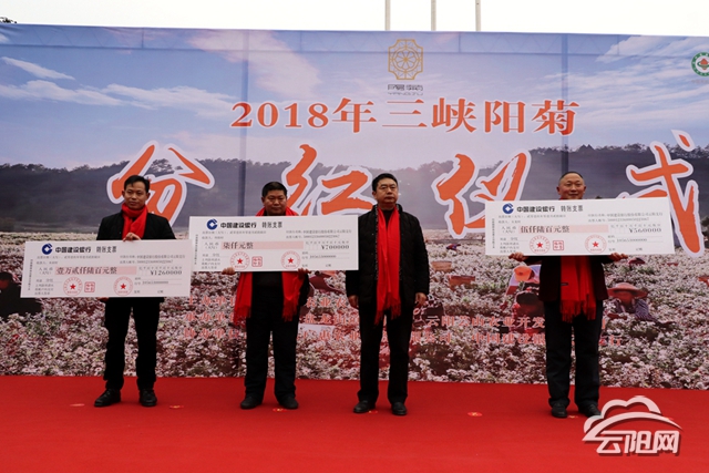 儀式上,對(duì)2018年三峽陽(yáng)菊種植情況進(jìn)行了總結(jié),對(duì)表現(xiàn)突出的優(yōu)秀村集體經(jīng)濟(jì)組織和種植戶進(jìn)行表彰和分紅。分紅涉及16個(gè)鄉(xiāng)鎮(zhèn)(街道)28個(gè)村(社區(qū)),分紅金額共計(jì)75萬余元。