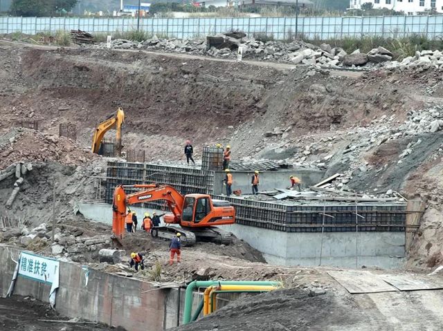 E砸道主體還有半個(gè)月完工,現(xiàn)場正在拆除一部分擋土墻模板。