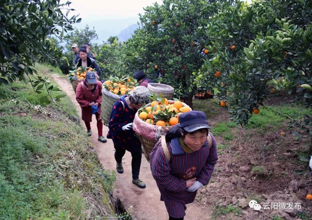 “每年這個時候村里老熱鬧了,有不少大車來收購。你們吃嘛,嘗下我們家的柑橘,甜得很喲?!惫r譚春安邊說邊一股腦兒地采摘大個兒的柑橘。