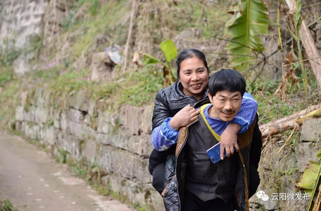 趴在丈夫的背上,