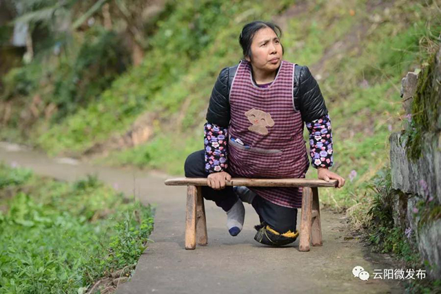 只能依靠板凳走路,