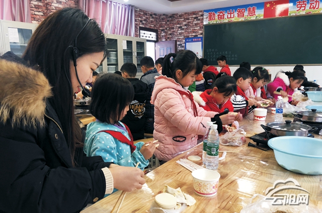 云陽網(wǎng)訊(通訊員 彭煉)3月13日,云陽縣彭詠梧小學(xué)3(4)班組織全班43名小學(xué)生開展勞技實(shí)踐課,圍繞“春天里的餃子宴”教會娃娃們?nèi)绾沃谱魇澄?,懂得從小珍惜糧食、體會做父母的甘苦,從而深知春種秋收的意義,美好生活要靠勞動得來。