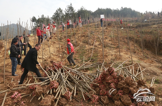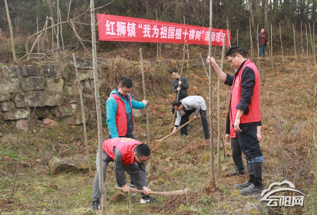 云陽網(wǎng)訊(通訊員 李錕梅)春風(fēng)和煦,陽光明媚。3月12日,紅獅鎮(zhèn)詠梧社區(qū)沙梁子山坡上彩旗飄飄,人頭攢動,一派熱鬧景象,來自縣府辦、扶貧辦、教師進(jìn)修學(xué)院、紅獅鎮(zhèn)機(jī)關(guān)等單位的干部職工200余人在此開展“我為祖國植10棵樹”全民義務(wù)植樹活動。