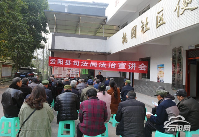 云陽網(wǎng)訊(實習(xí)生 鄭紅均)近日,縣司法局開展法制宣講會進社區(qū)活動,為人和街道桃園社區(qū)當?shù)鼐用駧硪粓龇ㄖ菩麄髦v座。
