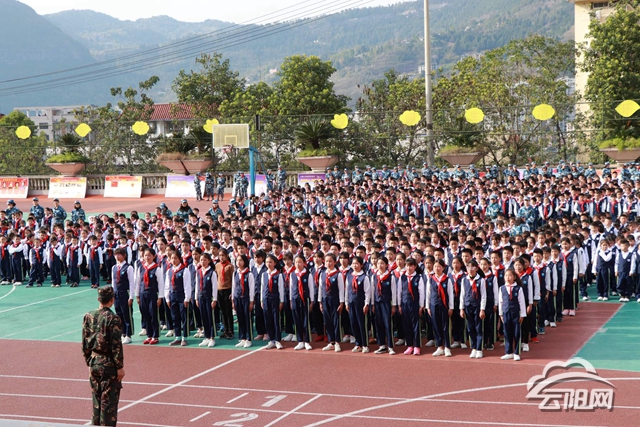云陽網(wǎng)訊(記者 何競嘉)3月25日,我縣海軍希望小學(云陽縣雙江小學)開展國防教育系列活動演練。全校學生經(jīng)過一周的軍事訓(xùn)練,以最昂揚的斗志和最飽滿的精神向?qū)W校和教官交出完美的答卷??h委常委、縣人武部政委肖霄檢閱了學生軍訓(xùn)成果。