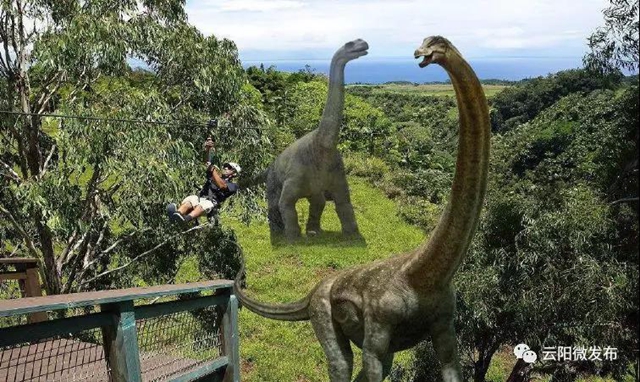 侏羅紀(jì)荒島求生運(yùn)動(dòng)公園和侏羅紀(jì)探險(xiǎn)谷通過(guò)恢復(fù)侏羅紀(jì)植被、植入仿真恐龍、場(chǎng)景景觀營(yíng)造穿越的沉浸體驗(yàn)。