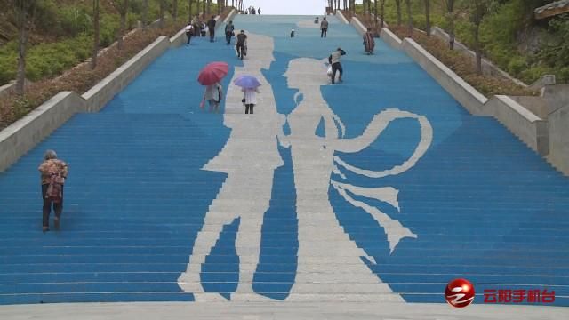 2017年5月,重慶面積最大階梯彩繪《遇見(jiàn)》在龍缸景區(qū)大安洞臺(tái)階完工迎客。這幅名為《遇見(jiàn)》階梯彩繪題材來(lái)源于《云陽(yáng)縣志》中龍女與樵夫的愛(ài)情故事,表達(dá)了龍女與樵夫在大安洞前相會(huì)的情景。彩繪一共有277步階梯,長(zhǎng)120米,實(shí)際占地面積520平方米,比目前全市最大的化龍橋重慶天地墻面彩繪面積還多了近300平方米。