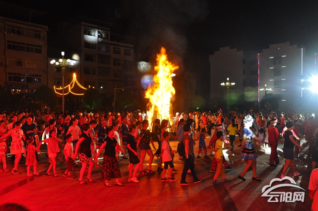 夜晚,土家兒女身披土家服飾,頭裹白布帕,在熊熊燃燒的篝火旁,踩著牛皮大鼓的鼓點,男女相攜, 翩躚進(jìn)退,輕盈擺手,放聲歌唱……