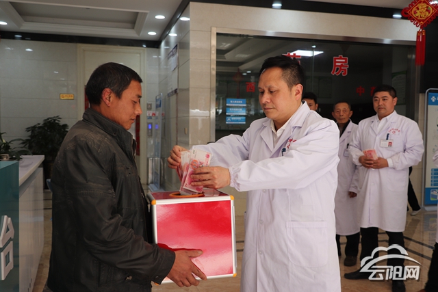 4月6日,記者來到云陽縣華山醫(yī)院看到,醫(yī)院大廳正在舉行一場特殊的募捐活動,該院發(fā)動醫(yī)護(hù)人員捐款,救助因左股骨頭缺血性壞死入院的71歲老人冉洪興。