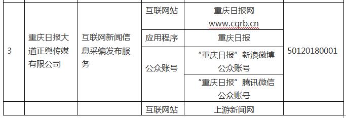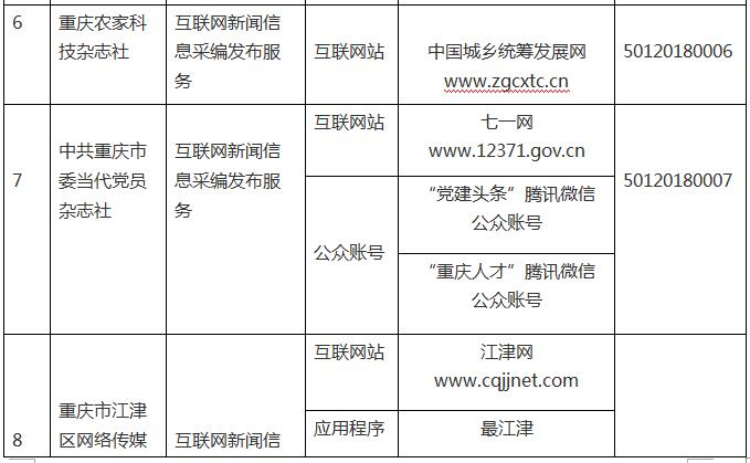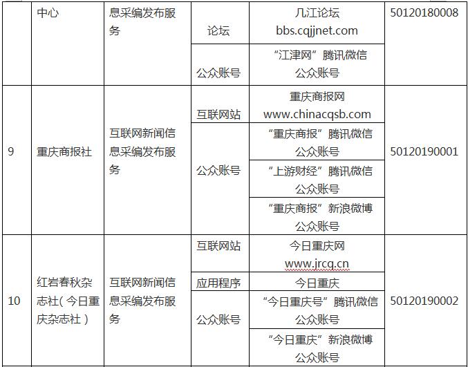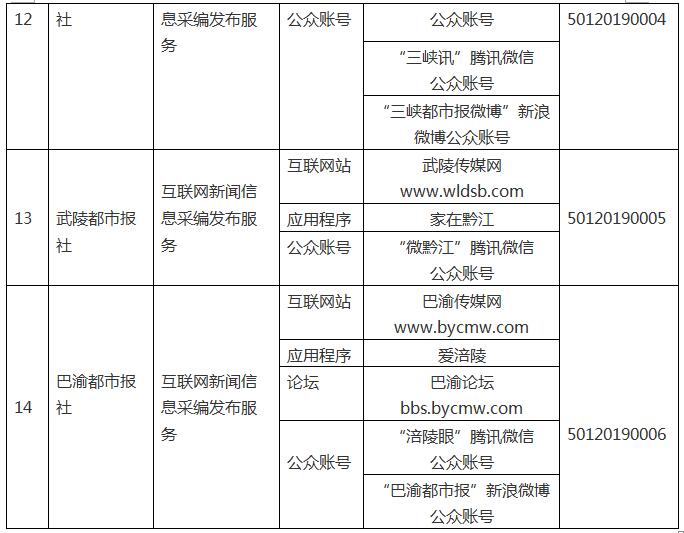 按照《互聯(lián)網(wǎng)新聞信息服務(wù)管理規(guī)定》(國(guó)家互聯(lián)網(wǎng)信息辦公室令第1號(hào))和國(guó)家網(wǎng)信辦有關(guān)要求,現(xiàn)將重慶市互聯(lián)網(wǎng)新聞信息服務(wù)單位相關(guān)許可信息予以公開。截至2019年3月31日,我市共有14家單位取得互聯(lián)網(wǎng)新聞信息服務(wù)許可,具體服務(wù)形式包括:14個(gè)互聯(lián)網(wǎng)站,11個(gè)應(yīng)用程序,2個(gè)論壇,36個(gè)公眾賬號(hào),共計(jì)63個(gè)服務(wù)項(xiàng)。