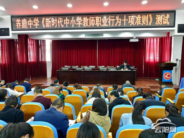 云陽網(wǎng)訊(記者 楊梅娜)為進(jìn)一步明確新時(shí)代教師職業(yè)規(guī)范,深化師德師風(fēng)建設(shè),4月11日,云陽縣養(yǎng)鹿初中全體教師參加《新時(shí)代中小學(xué)教師職業(yè)行為十項(xiàng)準(zhǔn)則》《處理辦法》知識(shí)測(cè)評(píng)。