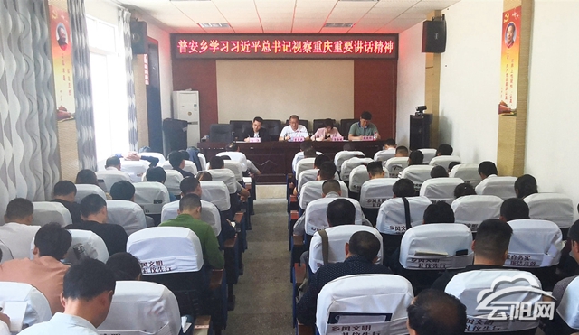 云陽(yáng)網(wǎng)訊(通訊員 劉小軍)4月24日,普安鄉(xiāng)組織機(jī)關(guān)干部、駐村工作隊(duì)、村四職干部、鄉(xiāng)屬單位負(fù)責(zé)人,傳達(dá)學(xué)習(xí)習(xí)近平總書(shū)記視察重慶重要講話精神??h政協(xié)副主席、工商聯(lián)主席曾愛(ài)民到會(huì)指導(dǎo)。