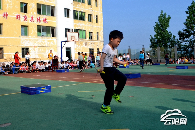 本次運動會共設單搖、雙搖、交叉跳、一帶一、8字繩、一字繩、4×1接力、跑跳繩接力等八個項目。全校400多名學生以繩為舞,舞出了活力,舞出了激情,舞出了生活的精彩。期間還進行了“我愛講故事”活動,從幼兒園小班到六年級共13名學生參與了講故事,聲情并茂的講術贏得了同學們陣陣掌聲。