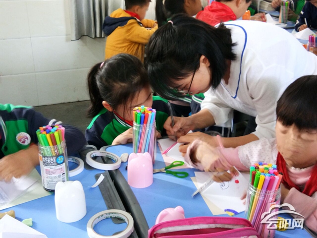 “它有一個(gè)名字叫《六面怪臉》,同學(xué)們想不想學(xué)習(xí)制作六面怪臉呢?”在泥溪小學(xué)少年宮內(nèi),渝北區(qū)龍山小學(xué)陳玲莉美術(shù)教師正在教孩子們畫(huà)畫(huà)、剪紙,孩子們專(zhuān)注地聆聽(tīng)著。