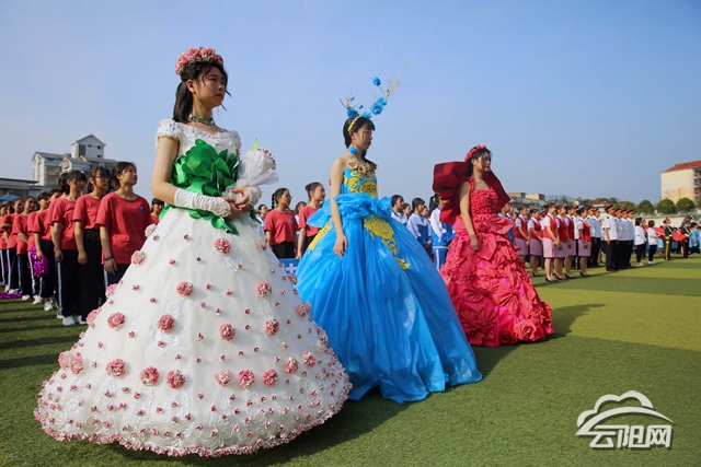 “七分茶三分情,清凈美洗身心”。旅游服務(wù)與管理專業(yè)部的學(xué)生現(xiàn)場展示了行禮、翻杯、奉茶、禮成等茶文化,詮釋著我國茶文化的博大精深;服裝專業(yè)的學(xué)生穿著自己設(shè)計的服裝,新穎、別致,吸引著在場觀眾的目光;智能制造專業(yè)部同學(xué)們戴上面具表演舞蹈串燒,滑稽、詼諧、幽默,高鐵服務(wù)專業(yè)的學(xué)生別具一格,整個進(jìn)場和出場,都顯示著文明、端莊、大方……