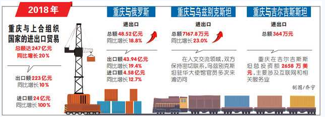 記者從市政府外辦了解到,去年以來,重慶與上合組織高層互訪密切,雙方合作不斷加深。在經(jīng)貿(mào)方面,去年重慶與上合組織國家的進出口貿(mào)易總額達到約247億元、同比增長20%,其中出口額223億元、同比增長10%,進口額24億元、同比增長100%。