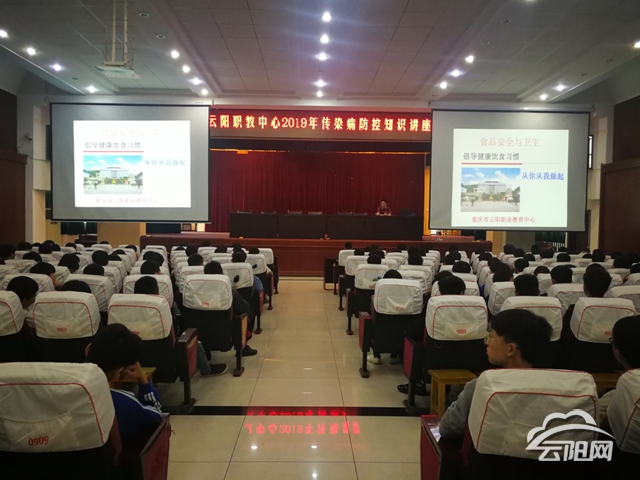 云陽網(wǎng)訊(記者 楊梅娜 通訊員 張小林)“同學們,常言道‘病從口入’,夏季是腸道傳染病的多發(fā)季節(jié),我們一定要養(yǎng)成良好的飲食衛(wèi)生習慣和生活習慣,特別注意飲食安全,不吃垃圾食品,防止病從口入……”近日,云陽職教中心舉辦傳染病防控知識講座,600余名智能制造專業(yè)部的學生聽取講座。
