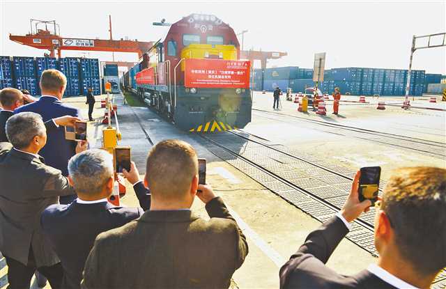 沙坪壩區(qū)團(tuán)結(jié)村鐵路集裝箱中心站,中歐班列(重慶)“白俄羅斯-重慶”傳化乳制品專列抵達(dá)重慶。(本報(bào)資料圖片)記者 萬(wàn)難 攝