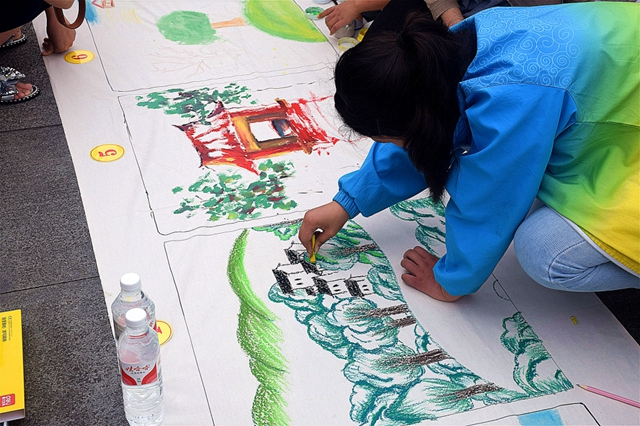 本次比賽分為手抄報和百米畫卷繪畫兩個板塊,分為小學(xué)組和中學(xué)組兩個級別。其中手抄報比賽獎項在活動之前已經(jīng)評選完畢,賽事組在活動中給獲得一等獎的人員進(jìn)行頒獎。沙市小學(xué)的李嘉欣等人獲得小學(xué)組手抄報一等獎,云陽中學(xué)的吳珊等人獲得中學(xué)組手抄報一等獎。隨后,近100名學(xué)生以“我為祖國植10棵樹”為主題,在百米長卷上舞動畫筆,大膽構(gòu)思、自由創(chuàng)作,通過油畫棒畫、水墨畫、水粉畫等多種藝術(shù)形式,用繽紛的色彩和優(yōu)美的線條創(chuàng)作出一幅幅充滿童趣的繪畫作品。他們或細(xì)筆勾勒,或濃墨豪刷,或低頭沉思,或靈感迸發(fā),一筆一畫都透露著稚嫩和童趣,絢麗的色彩、新奇的搭配和爛漫的想象讓現(xiàn)場觀眾忍不住點贊。