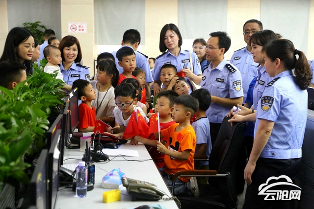 在結(jié)束運(yùn)動(dòng)會(huì)后,公安局樓前歡聲笑語不斷,到處涌動(dòng)著充滿好奇和欣喜的孩子們的身影,70多名小朋友有序走進(jìn)縣公安局應(yīng)急指揮中心大廳進(jìn)行參觀。在指揮中心大廳,民警向小學(xué)生們介紹了指揮中心的基本情況、主要職責(zé)及相關(guān)設(shè)備的功能與使用方法,向小學(xué)生們宣傳“110”在打擊犯罪、服務(wù)群眾工作中所起的積極作用。指揮中心民警采取問答互動(dòng)的方式,全場氣氛熱烈。與此同時(shí),民警還鼓勵(lì)小朋友們將自己獲得的安全知識(shí)、啟示與小伙伴們分享,并用實(shí)際行動(dòng)影響和帶動(dòng)家人及周圍的人。
