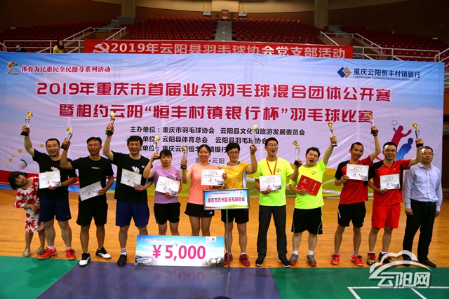 云陽網(wǎng)訊(記者 丁齊 實習生 劉超)5月26日,由市羽毛球協(xié)會、縣文旅委主辦,縣體育總會、縣羽毛球協(xié)會承辦的2019年重慶市首屆業(yè)余羽毛球混合團體公開賽暨云陽“恒豐村鎮(zhèn)銀行杯”羽毛球賽在云陽體育館圓滿落幕。