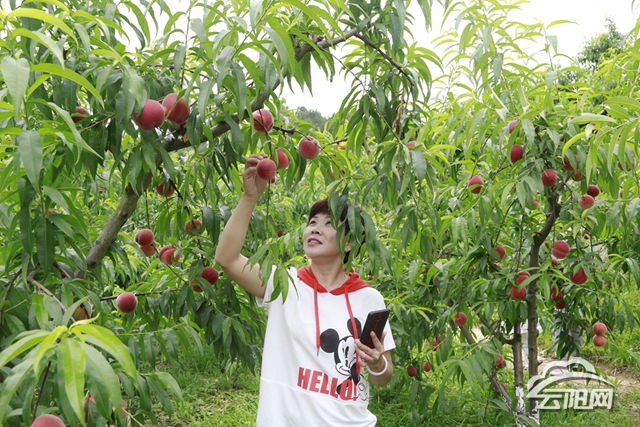 “聽說陽鳳這里有一個觀光桃園,我們慕名而來,這里的桃子又大、又紅、又脆、又甜,吃起來很香,可以現(xiàn)采現(xiàn)吃,感覺非常好?!庇慰忘S雪芬說。