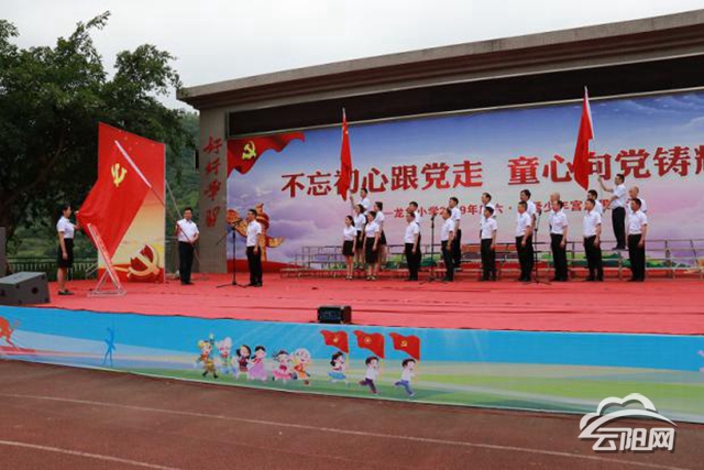 在入黨誓詞的感染下,團員、隊員紛紛加入傳遞活動,宣誓并承諾:“黨員前輩,在您的無私奉獻下,我校各項取得了輝煌成績。今天,我將接過您的旗幟,為龍角教育舔磚,為云陽教育添彩,為培養(yǎng)社會主義接班人不懈奮斗……”參加活動的團員、隊員緊緊跟隨飄揚的黨旗,邁著整齊的步伐,高舉團旗、隊旗,不斷向前邁進。