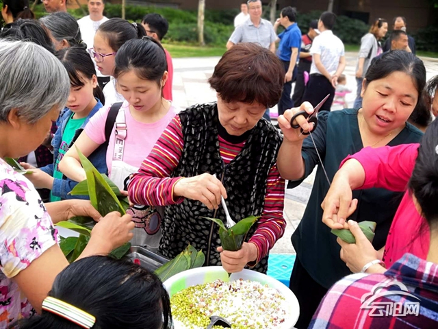 前幾天,小區(qū)物業(yè)的工作人員就為這次包粽子活動準備了所需要的材料,購買了粽葉、江米、蜜棗等必須用品,為居民過一個溫馨的節(jié)日做好充足準備。當(dāng)天,工作人員和會包粽子的居民一大清早就開始忙活起來,大家泡好糯米、綠豆,清洗和晾干竹葉,分揀紅棗,布置場地等,還特意邀請經(jīng)驗豐富的熱心居民劉美華阿姨現(xiàn)場指導(dǎo)。上午九點,包粽子活動正式開始,不少居民朋友來到現(xiàn)場,大家聚在一起分工協(xié)作,有條不紊地捋好粽葉做成漏斗狀,填好糯米,壓緊實后封口,扎捆,巧手翻飛,而不會包的居民則拿著竹葉一步一步學(xué)著。不一會兒功夫,三角形、牛角形、長條形等一個個粽子就呈現(xiàn)在了大家的眼前,在一片和諧歡笑聲中包好的粽子便已堆成了小山。