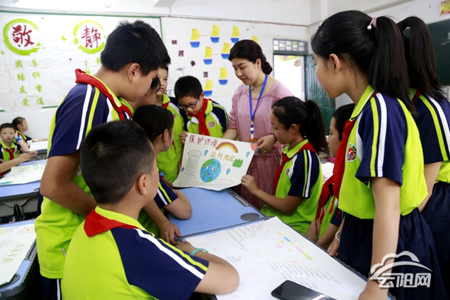 活動中,生態(tài)環(huán)保局,圍繞“綠水青山就是金山銀山”的主題,在杏家灣小學(xué)采取社會實踐活動、文藝表演、主題班會、手抄報、布置宣傳展板等多種形式進行宣傳,重點圍繞生態(tài)文明建設(shè)、環(huán)保政策、環(huán)保常識等方面進行宣傳,引導(dǎo)師生履行綠色生活公約,普及環(huán)保常識,讓他們了解世界環(huán)境日的由來,學(xué)習(xí)環(huán)境文化、環(huán)境道德、生物多樣性等環(huán)保知識。小學(xué)生們還宣讀綠色環(huán)保倡議書,并莊嚴宣誓。倡議全體師生牢固樹立保護環(huán)境從我做起,從身邊小事做起的思想,積極踐行節(jié)約用水、節(jié)約用電、珍惜紙張、愛護花草樹木、垃圾分類投放等勤儉節(jié)約、綠色低碳、文明健康的生活方式,并帶動家人、朋友主動愛護環(huán)境,營造人人關(guān)心環(huán)保、支持環(huán)保、參與環(huán)保的濃厚社會氛圍,攜手共建山清水秀美麗云陽。