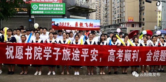 早上6點(diǎn)30分左右,交巡警紛紛到達(dá)了鳳鳴、紅獅等鄉(xiāng)鎮(zhèn)學(xué)校,此時(shí),接送考生們的車隊(duì)已準(zhǔn)備就緒。雖然天下著大雨,但學(xué)生們依然精神抖擻,在民警的指揮和引導(dǎo)下,井然有序地排隊(duì)出校門、上車。有不少考生家長(zhǎng)前來送行,給孩子一個(gè)加油的擁抱;還有不少高一、高二的學(xué)弟學(xué)妹們?yōu)榧磳⒉饺肟紙?chǎng)的師哥師姐吶喊助威,一聲比一聲高的“高考,必勝”響徹在雨中。