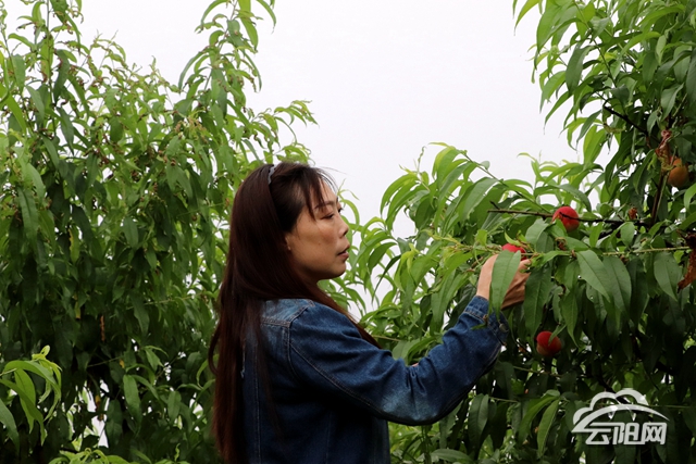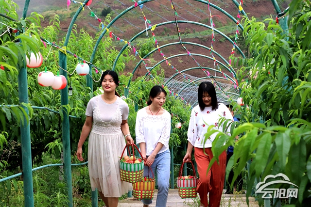 青云寨生態(tài)農(nóng)業(yè)園占地600畝,園內(nèi)栽植有胭脂翠桃、雙效桃、清脆李、玫瑰香李、無花果等,目前50余畝胭脂脆桃悄悄紅了臉,綠葉掩映間,簇擁在一起的桃子和遠處的涼亭勾勒出一幅幅鄉(xiāng)村美景圖,桃子的芬芳讓人垂涎欲滴,前來摘桃的游客也是絡(luò)繹不絕。