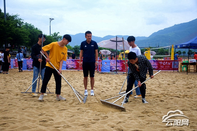 在陽(yáng)光沙灘,120多位志愿者在緊鑼密鼓地進(jìn)行著各項(xiàng)培訓(xùn)和實(shí)操訓(xùn)練。他們有的是撿球員,負(fù)責(zé)在賽場(chǎng)內(nèi)撿球;有的是場(chǎng)地清理員,負(fù)責(zé)整理賽后場(chǎng)地。志愿者張明亮說(shuō):“我的工作是為運(yùn)動(dòng)員平沙。這個(gè)工作要為運(yùn)動(dòng)員準(zhǔn)備好平整、適合比賽的場(chǎng)地,而且不能影響運(yùn)動(dòng)員正常比賽?!敝驹刚邘ш?duì)老師表示,將積極安排此次沙排賽的志愿者,認(rèn)真做好志愿工作,并為運(yùn)動(dòng)員加油鼓勁的工作。
