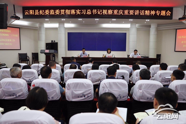 云陽網(wǎng)訊(記者 何競嘉)6月12日,縣紀委監(jiān)委召開專題會議,深入貫徹學習習近平總書記在“不忘初心、牢記使命”主題教育工作會議上的重要講話精神,傳達市委常委會(擴大)會議和全市“不忘初心、牢記使命”主題教育工作會議精神,以及縣委十四屆七次全會會議精神,研究部署縣紀委監(jiān)委當前工作。全體紀檢監(jiān)察干部共計170人參會。