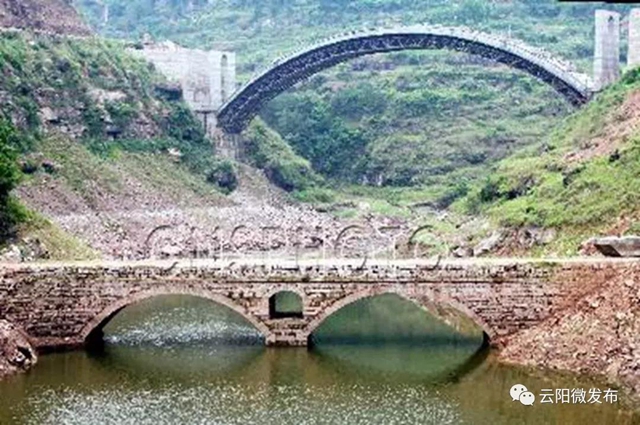 渠馬大橋和即將淹沒的石橋交錯著,石橋斑駁而滄桑,已完成了它的歷史使命。