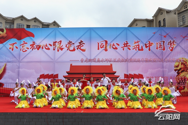 云陽網(wǎng)訊(實(shí)習(xí)生 劉浮生)6月18日,青龍街道亮水坪社區(qū)與轄區(qū)共駐共建單位聯(lián)合開展“不忘初心跟黨走 同心共筑中國夢”慶祝建黨98周年文藝活動??h人大副主任肖萬福出席。