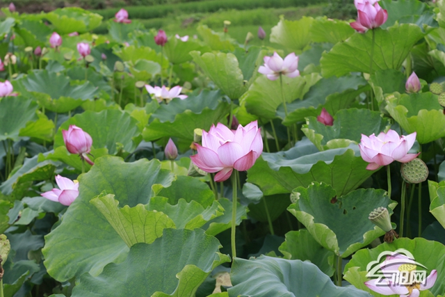 不時隨風(fēng)輕擺,展露著清新高潔的風(fēng)韻,成為夏日里一道靚麗的風(fēng)景,吸引游客前來拍照留戀。(王彬彬 攝)