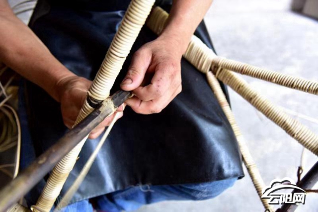 “這批藤椅是顧客年前就訂下的,現(xiàn)在才騰出功夫來做,目前,還有不少顧客在排隊(duì)訂購?!绷杞ㄔ聘嬖V記者,在崇尚手工制作的今天,藤編工藝看似簡(jiǎn)單,工具也只有剪刀、錐子等,實(shí)際操作起來非常耗費(fèi)心力。單就制作一張?zhí)僖味?,不僅僅要花費(fèi)整整兩天的時(shí)間來進(jìn)行編織,而且還有將廣藤、水竹削成蔑再進(jìn)行晾曬、炙烤等繁瑣而十分考驗(yàn)匠人手藝的前期準(zhǔn)備工作。記者注意到,凌建云的雙手因?yàn)殚L(zhǎng)年累月的編織,已被磨平,連指紋都難以辨認(rèn)。據(jù)了解,凌建云制作一張?zhí)僖问蹆r(jià)為400元,因其色澤素雅、造型美觀、質(zhì)地堅(jiān)韌、手感平滑,能給人融入自然,返璞歸真的簡(jiǎn)樸感受,故藤編制品供不應(yīng)求。除了藤椅外,凌建云還編織茶幾、藤帽等藤制品。
