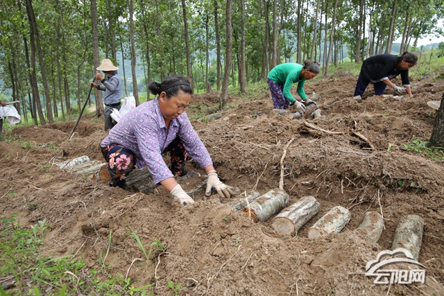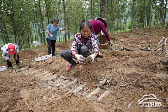 云陽網(wǎng)訊(記者 王彬彬)7月12日,記者在南溪鎮(zhèn)大吉村看到,村民們正在綠樹環(huán)繞的天麻基地種植天麻,一段段菌種木鋪在掏好的溝里,等待后面的村民來培上合適的土壤。