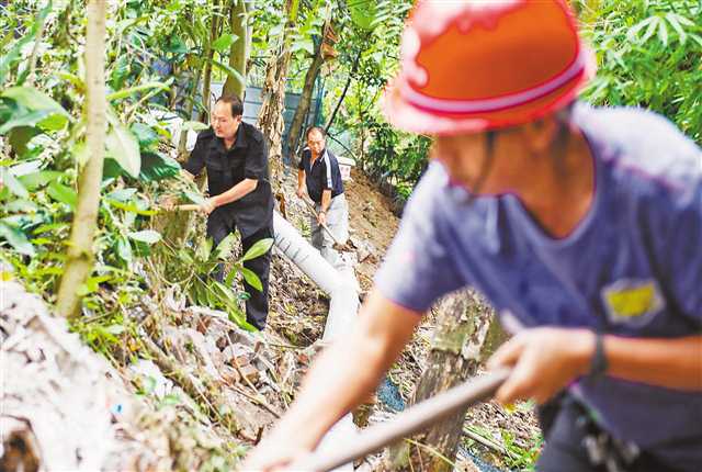 7月29日,九龍坡區(qū)石板鎮(zhèn)馬家溝水庫附近,工人正在整治污水管網(wǎng)旁的邊坡。首席記者 謝智強(qiáng) 實(shí)習(xí)生 顏梁 攝