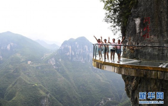 7月30日,游客在云陽龍缸國(guó)家地質(zhì)公園絕壁玻璃棧道上留影。 云陽龍缸國(guó)家地質(zhì)公園位于重慶市云陽縣東南隅,深處三峽庫(kù)區(qū)腹心,景區(qū)內(nèi)地貌奇特、雄險(xiǎn)俊秀、風(fēng)景壯美。 新華社記者王全超攝