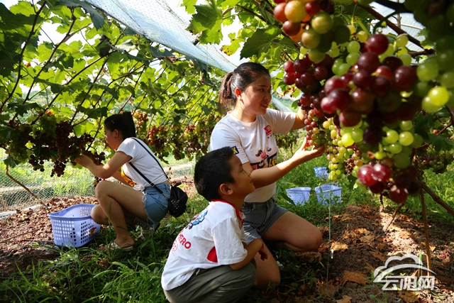 葡萄園2016年開始建園,種植有夏黑、巨峰、紅提等品種,面積達40余畝,今年預計可采收葡萄8萬余斤。