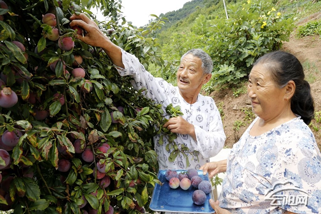 “老財(cái)哥,你家今年的青翠李收成如何?”“老財(cái)哥”是該村有名的青翠李種植大戶,本名叫陳光財(cái),今年65歲。2015年9月,他應(yīng)駐村工作隊(duì)邀請到云南昭通考察青翠李,并將540株青翠李苗帶回,種在荒蕪的 “巴掌田”“雞窩地”上,深耕細(xì)作,育成了綠瑩瑩的“搖錢樹”。