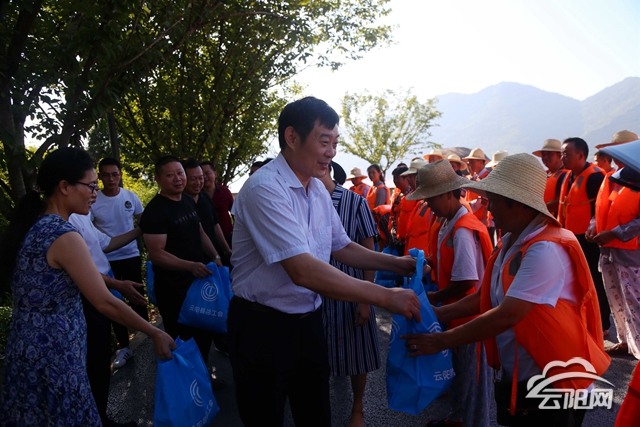 “你們辛苦了!感謝你們把長(zhǎng)江的環(huán)境清理得這么干凈?!痹谠鹿獠萜海w勇向奮戰(zhàn)在一線的長(zhǎng)江清漂隊(duì)員們表示親切慰問(wèn),并為他們送上了綠豆、藿香正氣水等防暑用品。趙勇說(shuō),為切實(shí)保護(hù)好庫(kù)區(qū)環(huán)境,清漂大隊(duì)的隊(duì)員們每天都堅(jiān)守在清漂一線,為航道暢通和守護(hù)一江碧水保駕護(hù)航,為保護(hù)云陽(yáng)“一江四河”的生態(tài)環(huán)境做出了貢獻(xiàn),希望大家堅(jiān)守崗位、履職盡責(zé),做好高溫天氣的安全作業(yè)和防暑降溫措施。
