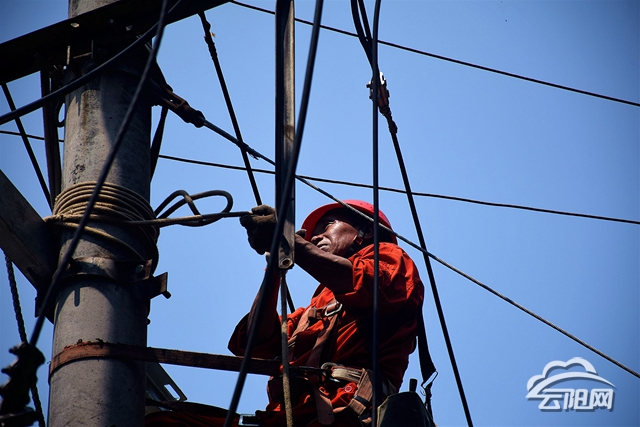 “一、二、三,使勁!”被繩子捆著的變壓器通過輪滑牽引,一步步地往上“爬”,在地面牽拉的工人身體往后傾斜,雙手抓住繩索,奮力牽拉,不由地喊起了口令。而構(gòu)架上的兩名搶修工人頭頂烈日,腳踏電桿,熟練地進(jìn)行拆線、擰螺絲、固定變壓器等操作……三四個小時的作業(yè),他們厚重的工作服已被汗水浸透。中午1點左右,電來了!居民又能享受到空調(diào)帶來的清涼,而搶修工人們收拾了東西,簡單吃過中飯,又將趕往下一個地方。