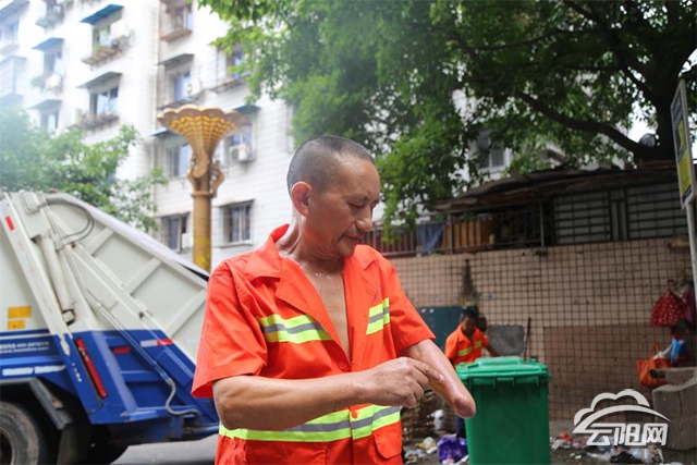 去年,方敘安兩個女兒現(xiàn)在都考到重慶,大女兒在國稅局,二女兒在武警部隊。但他并沒有選擇去重慶安享晚年,而是繼續(xù)干起了老本行——清掃垃圾?!案闪?xí)慣了,一天不干,渾身憋得慌!”方敘安說。從2009年起,早上6點起床,7點開始清掃,晚上9點回家。方敘安用11年的時間堅守在高溫下,為云陽干凈美麗的環(huán)境默默付出著。